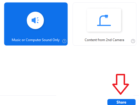 Yöntem 3: Müziği paylaşmak için, “Paylaş” düğmesine tıklayın. Böylece, Zoom toplantısındaki herkes sizin müziğinizi duyabilir.