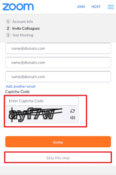 Sonraki adımda bir kuruluş ya da bir eğitim kurumu e-postanız istenebilir. Eğer bir bilginiz yok ise güvenlik kodunu yazıp “Skip this step” butonunu tıklayıp bir sonraki adıma geçiyoruz.