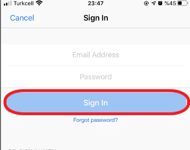 Uygulamayı açalım ve ekranda Sign In i tıklayalım.