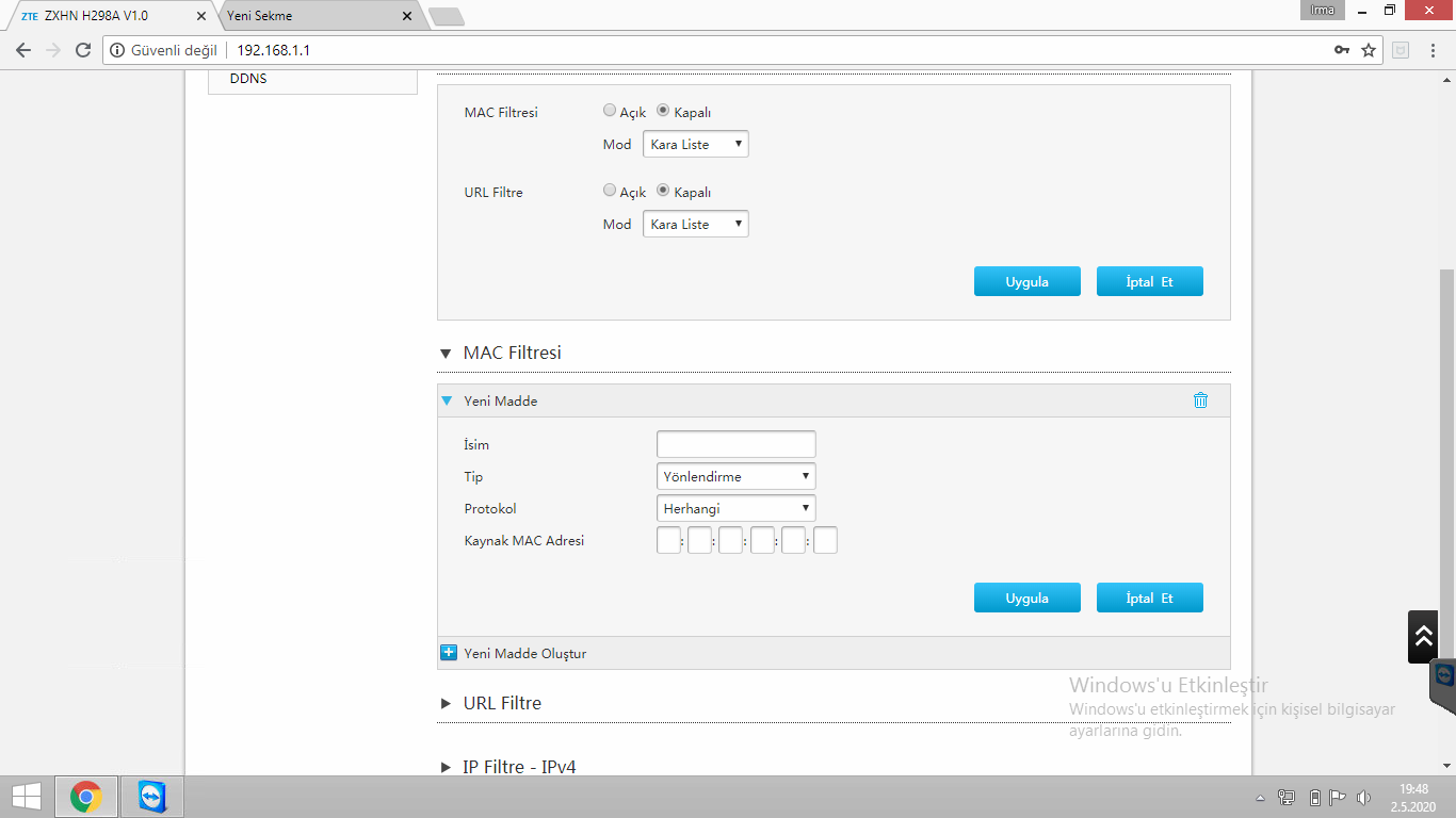 Zte 298a Modemde Mac Filtreleme Nasıl yapılır?