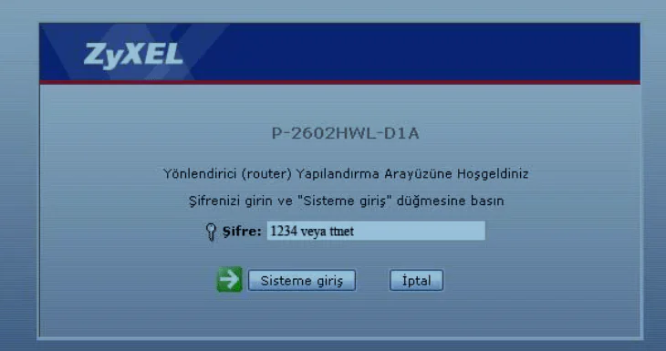- Modemi TTNET’ten almayan müşteriler için modem şifresi 1234’tür.