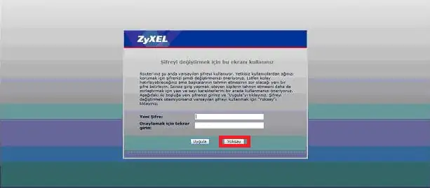 Giriş yaptıktan sonra gelecek olan ekranda modem arayüz şifrenizi değiştirebilirsiniz veya değiştirmeden geçmek için Yoksay butonuna tıklayabilirsiniz.