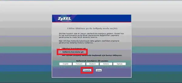 Bu adımdan sonra açılacak olan ekranda Gelişmiş Kuruluma Git seçeneğini işaretleyip Uygula butonuna tıklıyoruz.