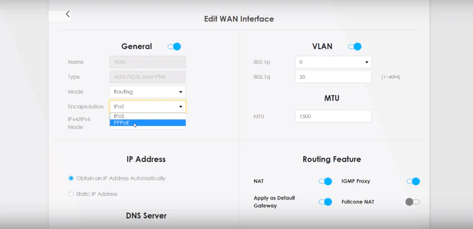 Ekran üzerinden Encapsulation bölümü tıklanır ve PPPoE işaretlenir.